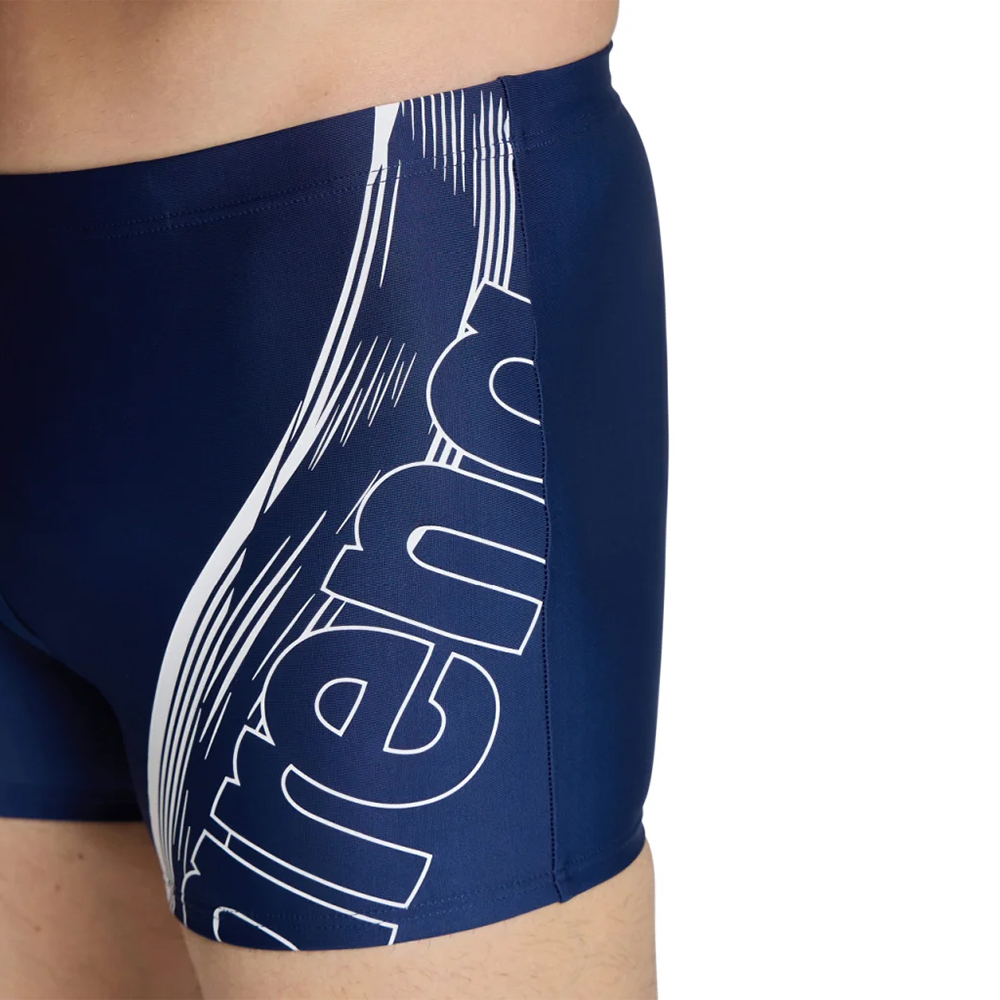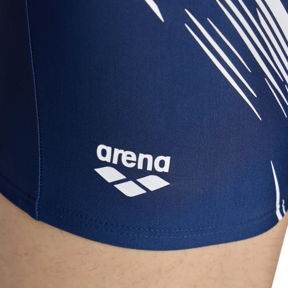 Arena Swim Short Graphic muški šorts sa grafičkim printom delimično je napravljen od vlakna dobijenog od recikliranih plastičnih boca. Otporan na hlor i sa UV zaštitom, ovaj sportski kupaći kostim idealan je za plivanje krugova kako u zatvorenom, tako i na otvorenom bazenu. Postavljen je sa prednje strane i opremljen unutrašnjim užetom za podešavanje, omogućavajući vam da plivate bez ometanja u kostimu koji ostaje na mestu.