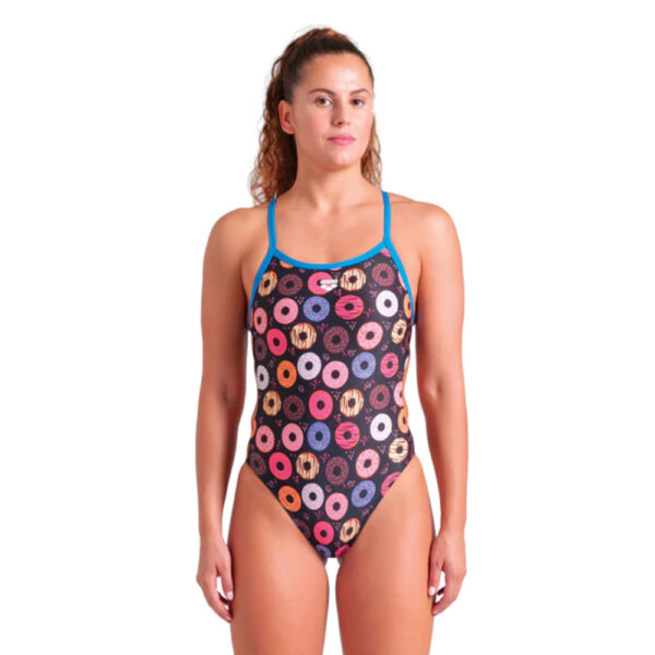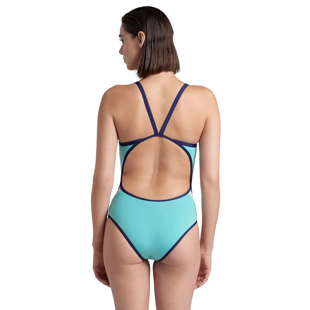 Otvorena leđa, tanke naramenice i visoki izrez nogu omogućavaju maksimalnu slobodu pokreta, bolji osećaj vode i manji otpor. Moderan dizajn krase ikonična timska pruga i vintage logo, koji slave Areninu tradiciju.
