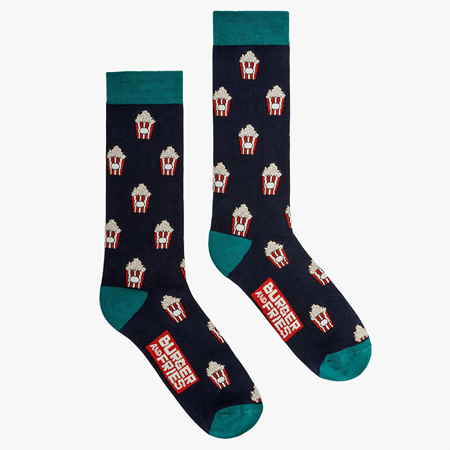 Burger and Fries Pop Corn – Navy Blue / Verde čarape donose