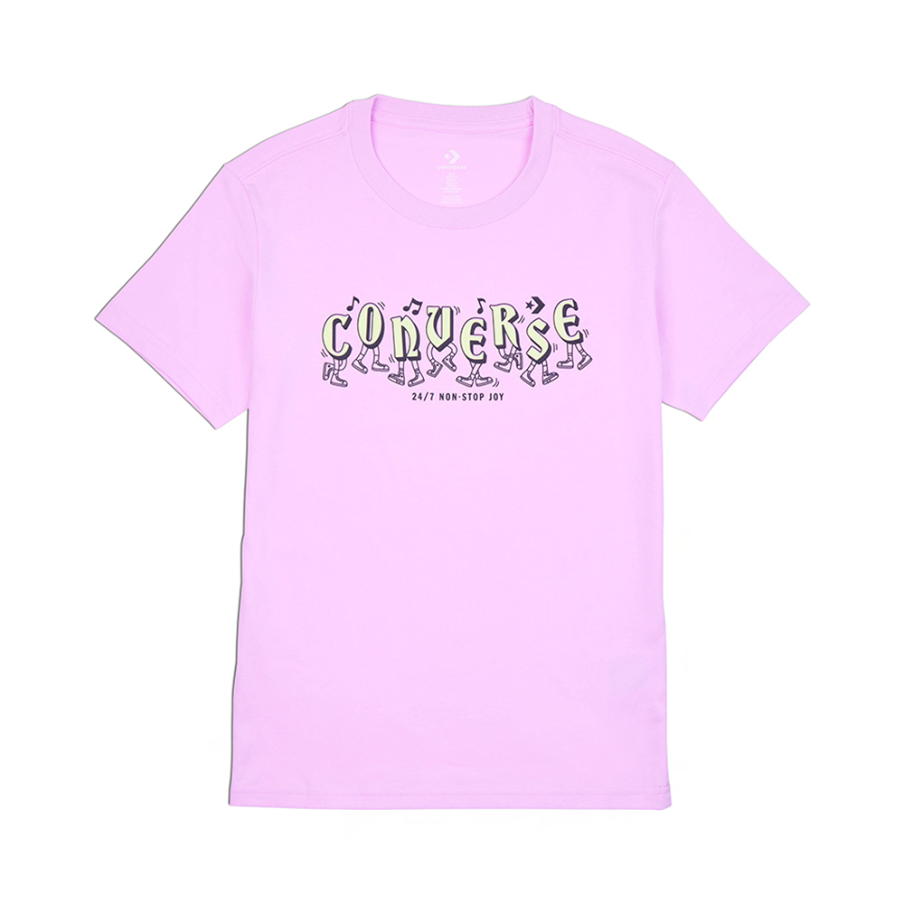 Inspirisana dobrim vibracijama muzičkih festivala, ova Converse Festival Logo majica od pamučnog žerseja je spremna za žurku. Logotip koji pleše i poruka „24/7 NON-STOP RADOST“ savršena su kombinacija sa tvojim patikama za ples – Chucks.