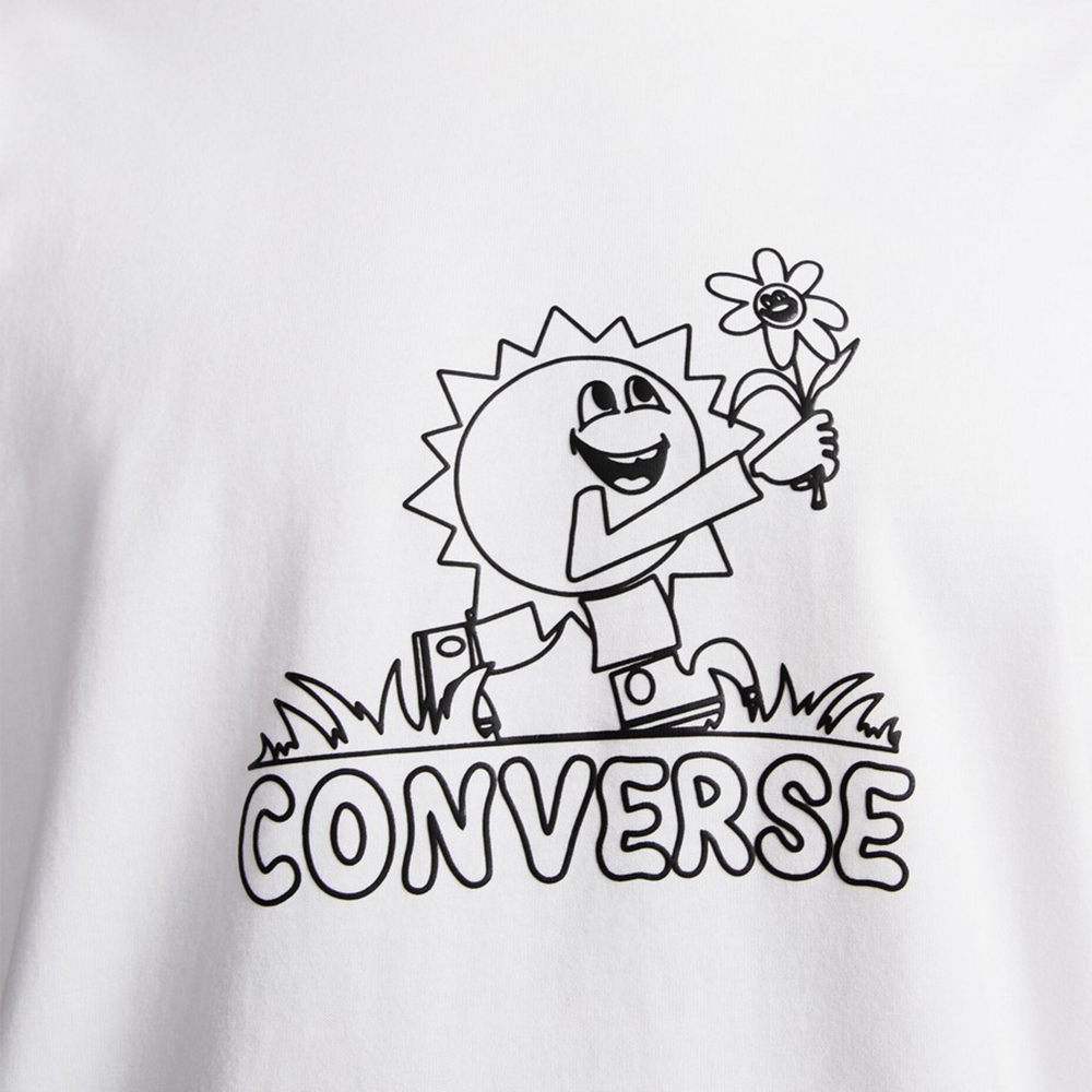 Converse Hand Drawn Sun Tee majica Vam omogućava da ovog leta pronađete radost u malim stvarima – poput malo sunčeve svetlosti. Ova majica sa grafikom je nežan podsetnik da se zaputite napolje i uživate u svom okruženju. Sa velikim ručno crtanim suncem koje drži cveće na mekanom pamučnom žerseju, namenjena je da Vam uveliča dan na veliki način svaki put kada je obučete.