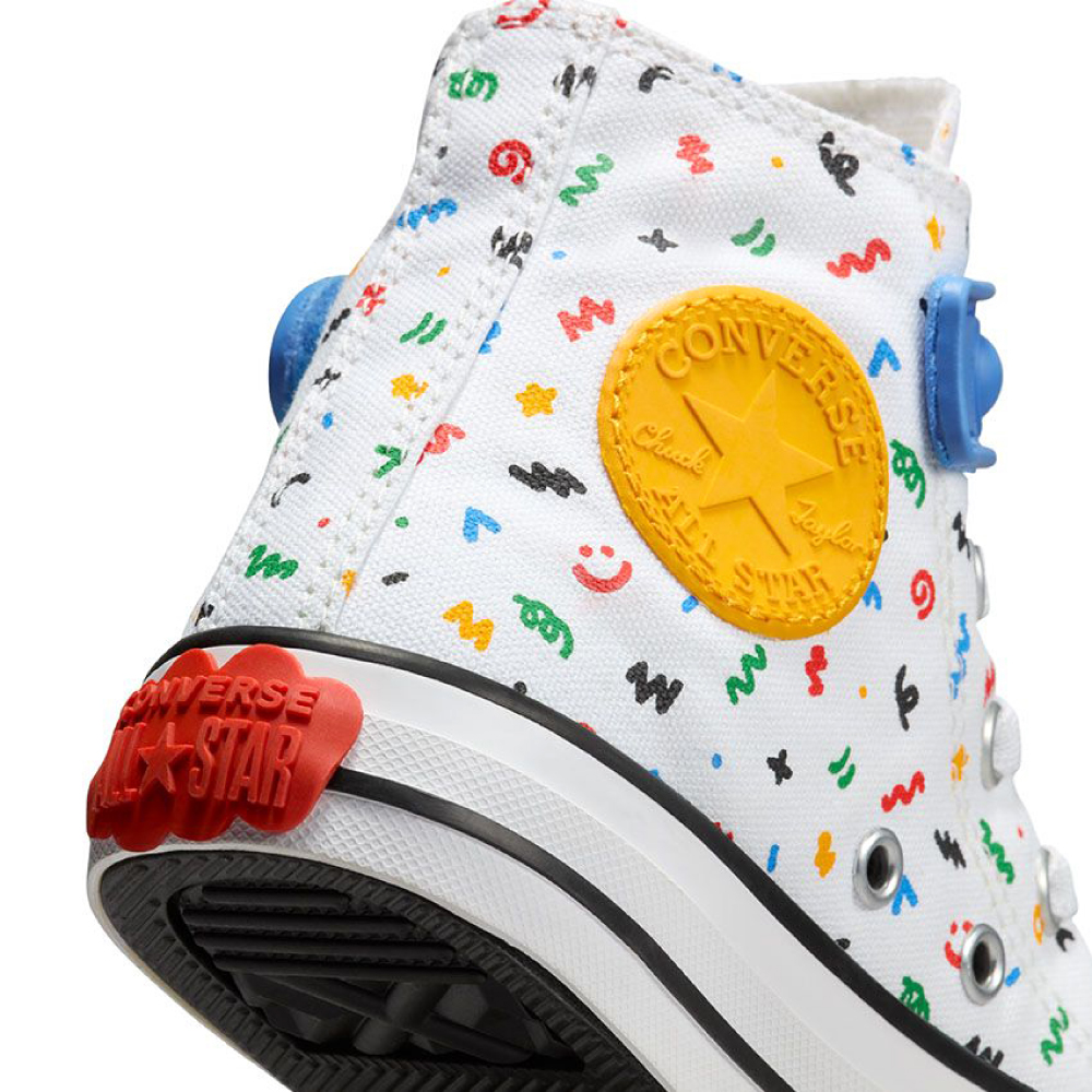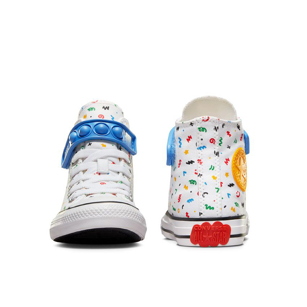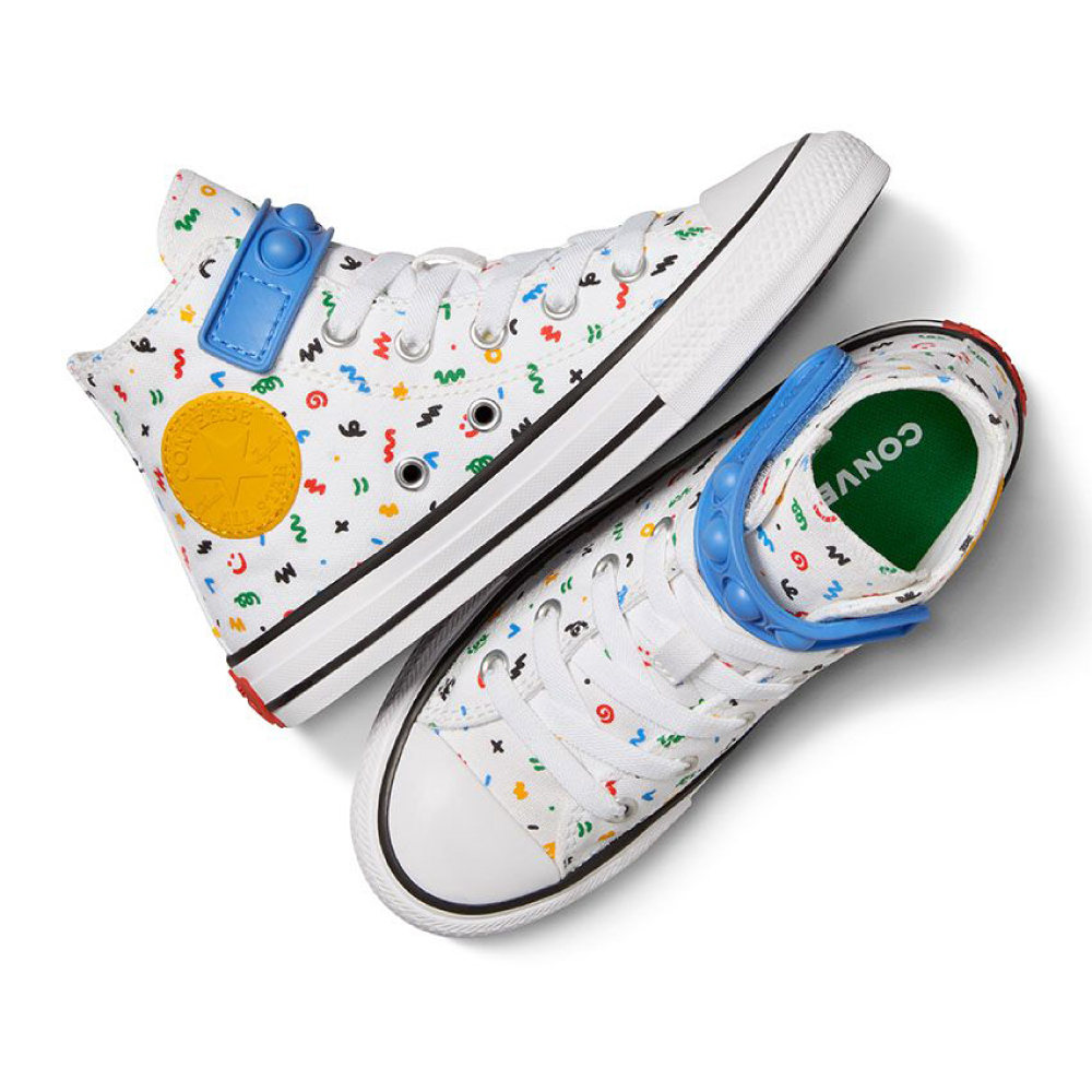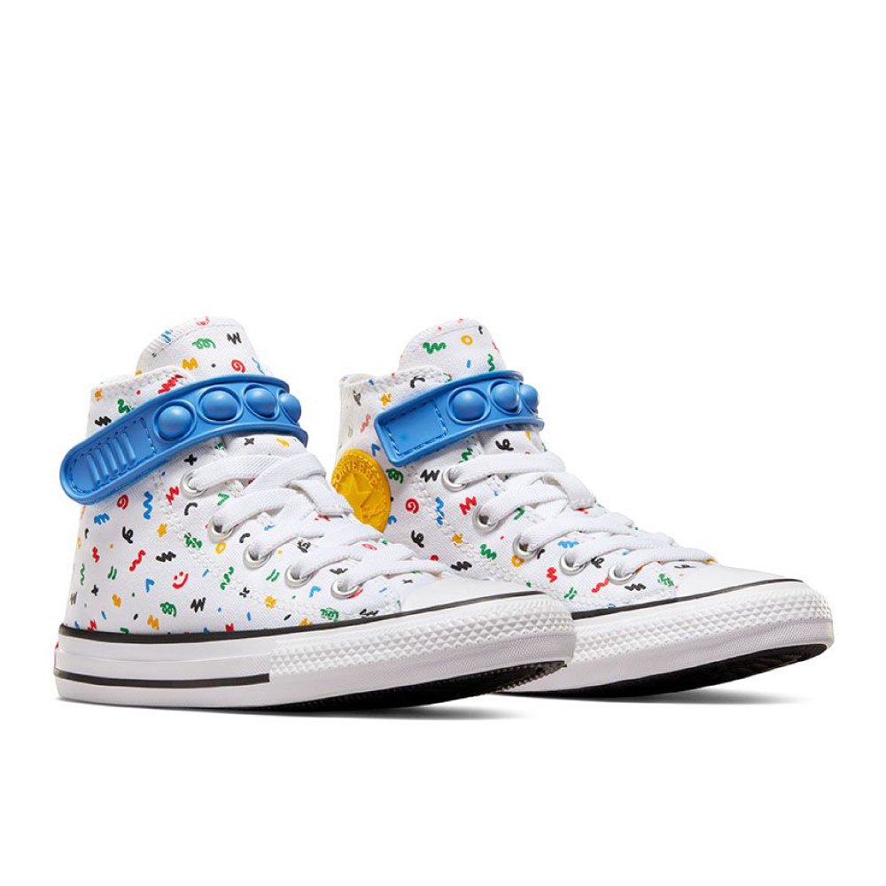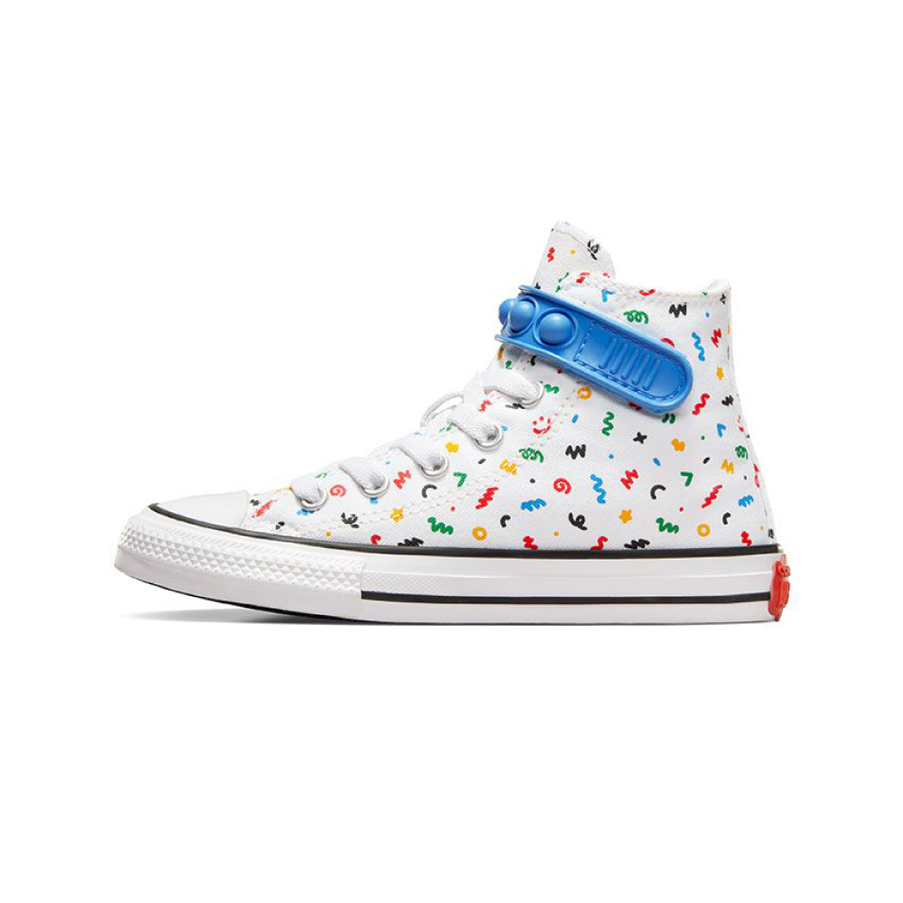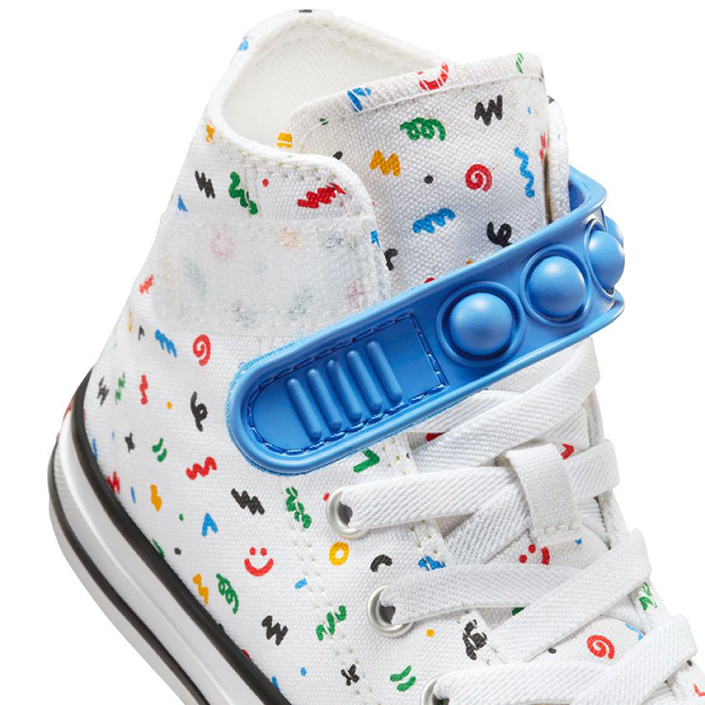 Converse Chuck Taylor All Star 1V zabavna traka sa mehurićem pretvara vreme vezivanja u vreme za igru. Ovi laki Chucks održavaju male umove u igri sa zabavnom kaišom sa mehurićima. Osim toga, mnoštvo crteža će odgovarati njihovoj haljini poprskanoj farbom. Ili učinite bilo koju odeću razigranijom.