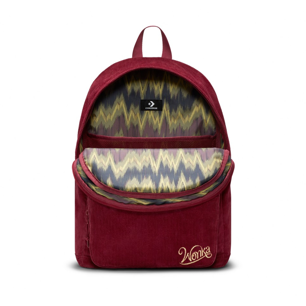 Converse Wonka Go 2 Backpack je ranac koji kombinuje stil i funkcionalnost, inspirisan magičnom temom iz filma „Willy Wonka & the Chocolate Factory“.