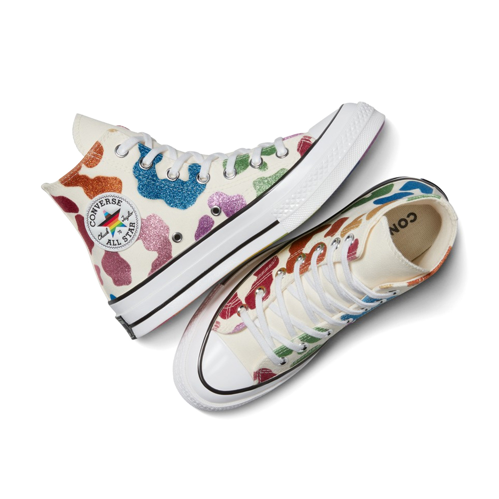 Ikonična Chuck Taylor značkica na članku i All Star pločica sa motivom „progress“ zastave