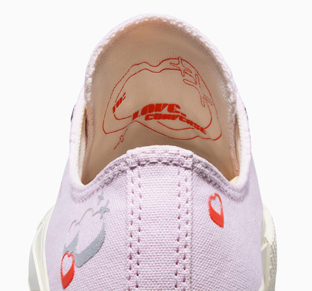 - Crveni, silikonski grafički prikazi srca i srebrni metalik otisak donose vibracije iz 2000-ih