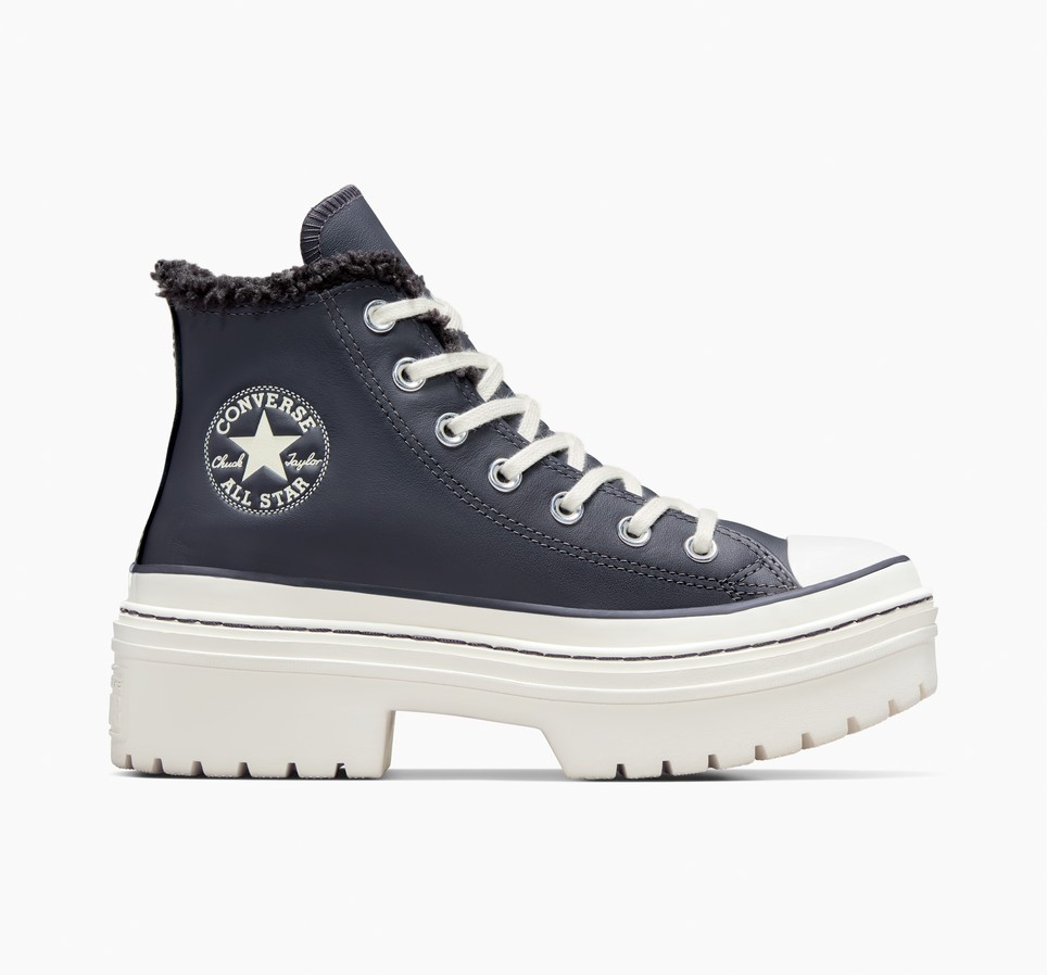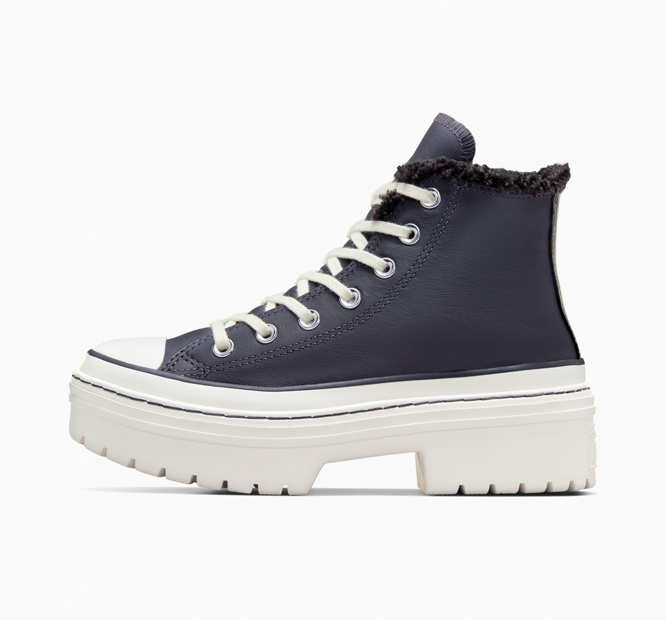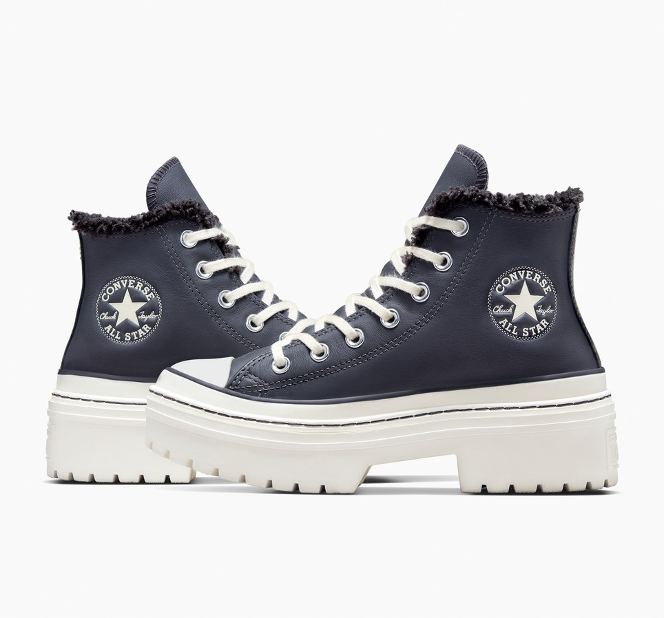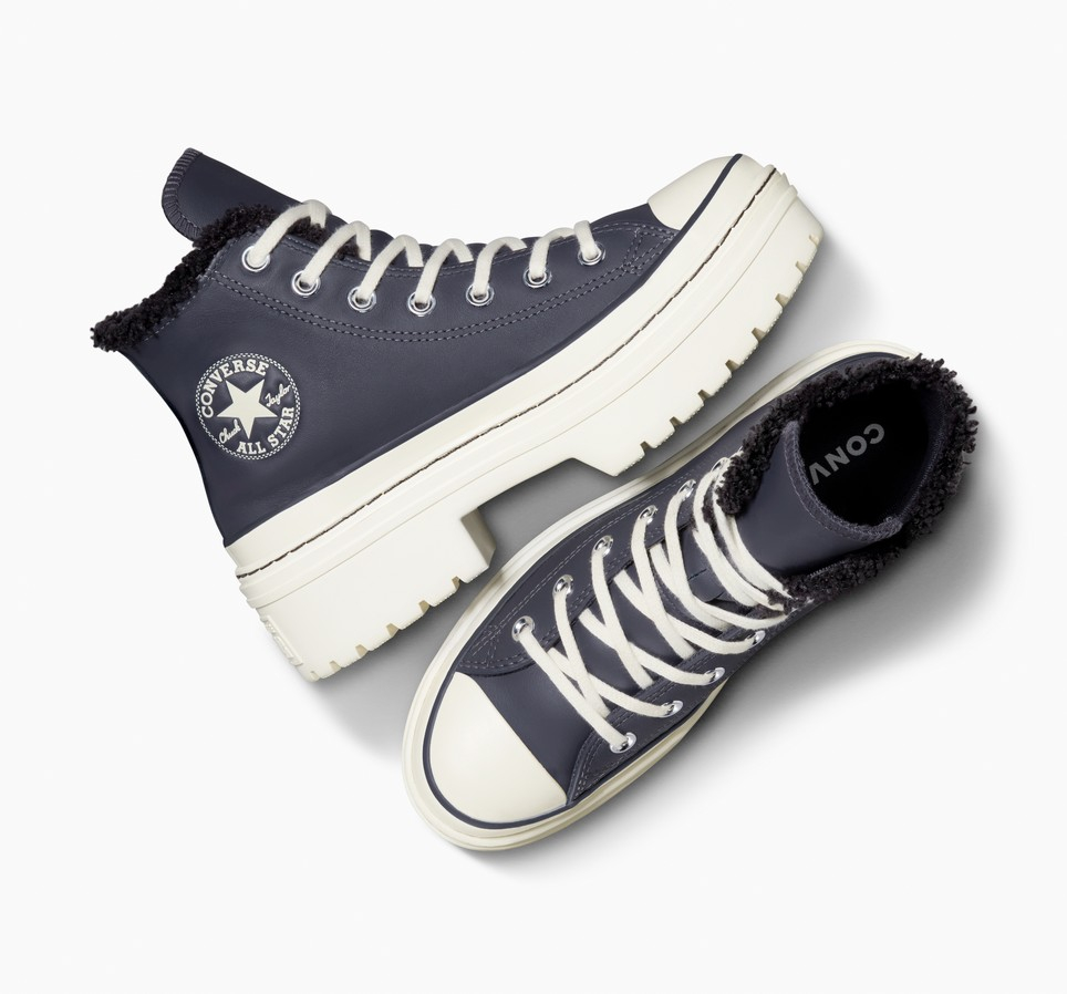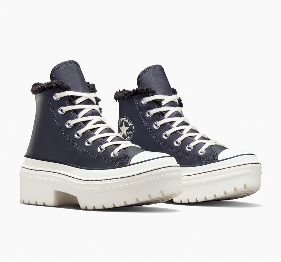 Hladne neutralne boje i mekano krzno čine ove kožne Converse Chuck patike sa rebrastom petom