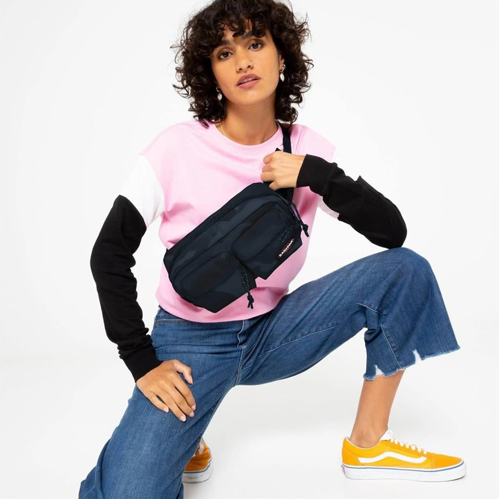 Eastpak-ov klasični model torbe je prerađen u pravougaonu siluetu sa duplim prednjim džepovima Bumbag Dobule Casual Camo. Podesite kaiš oko struka da biste je oblikovali na različite načine.
