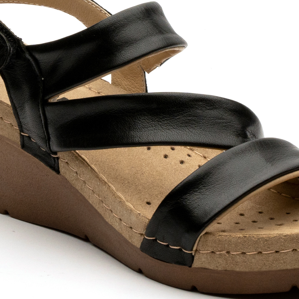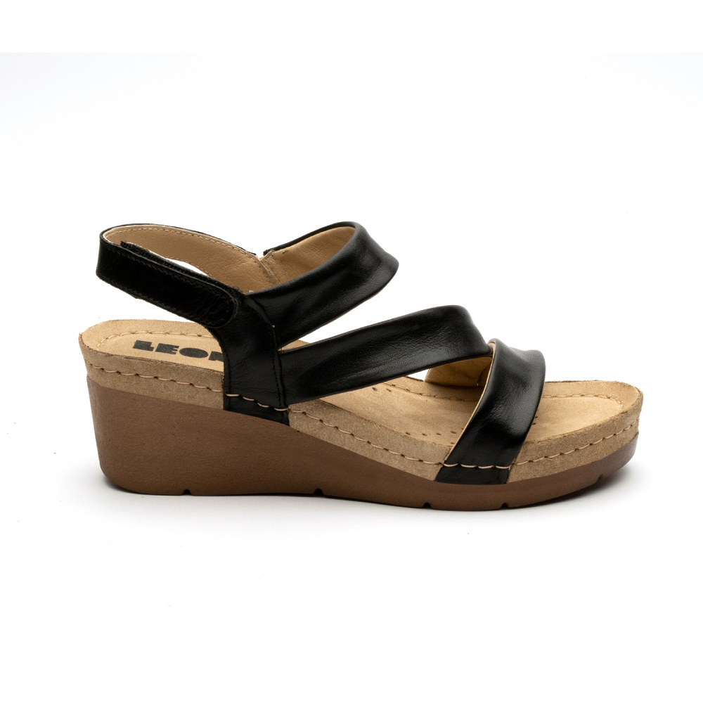 Ženska sandala Leon model 1020 izrađena od prirodne kože i kožnom tabanicom koja sadrži masažni gel. Đon je naparvljen od poliuretanske mase