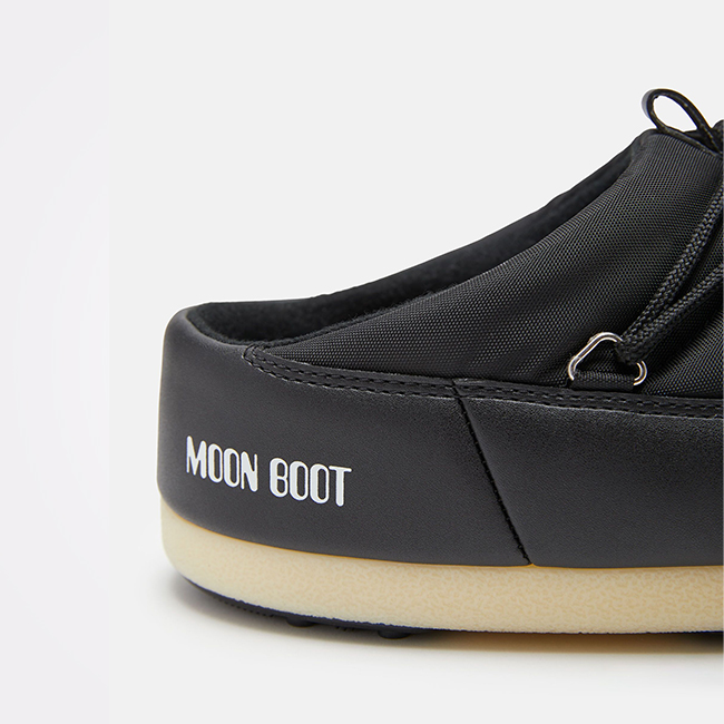 Ovaj slip-on model je inspirisan originalnim Moon Boot čizmama koje su nadahnute lunarnim sletanjem iz 1969. Prerađene u plitku, slip-on verziju, ova silueta je spremna za gradske ulice. Izrađene su od vodoodbojnog najlona, sa laganim đonom i usisnim tačkama na gumenom đonu sa šarama za dodatnu stabilnost.