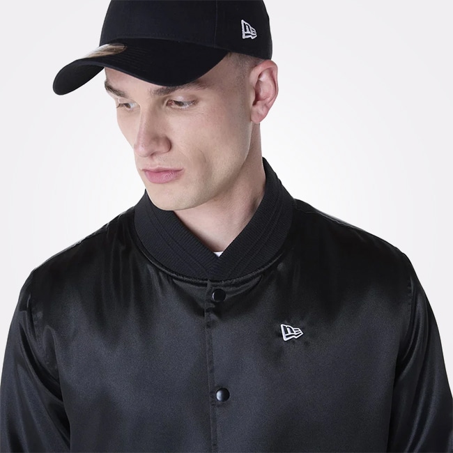 New Era Essential bomber jakna u crnoj boji izrađena je od satenskog materijala koji spaja klasičan dizajn sa sofisticiranim izgledom. Minimalistička silueta i elegantan finiš čine je savršenim izborom za urbane i smart-casual kombinacije.