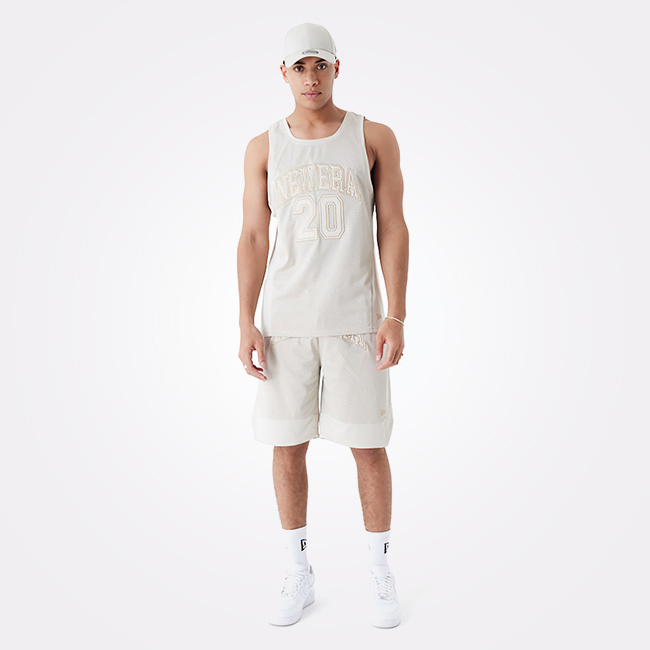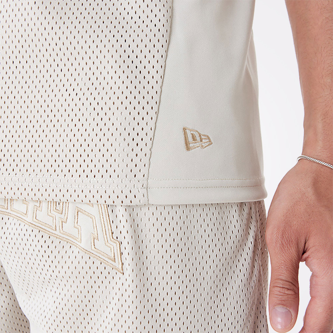 New Era Arch Logo Stone Mesh Tank Top je lagana i moderna majica bez rukava, savršena za tople dane i sportsko–urbane kombinacije.