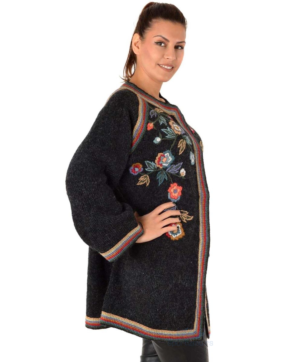SIROGOJNO 4174-420 ženska jakna. Kontrolisano poreklo i proces proizvodnje prediva. Ručna izrada u domaćoj radinosti uz standardizovanu kontrolu kvaliteta. Atraktivan floralni dezen i model koji naglašava figuru. Jedan od najpopularnijih modela. Laka za kombinovanje, pogodna za hladnije vreme.