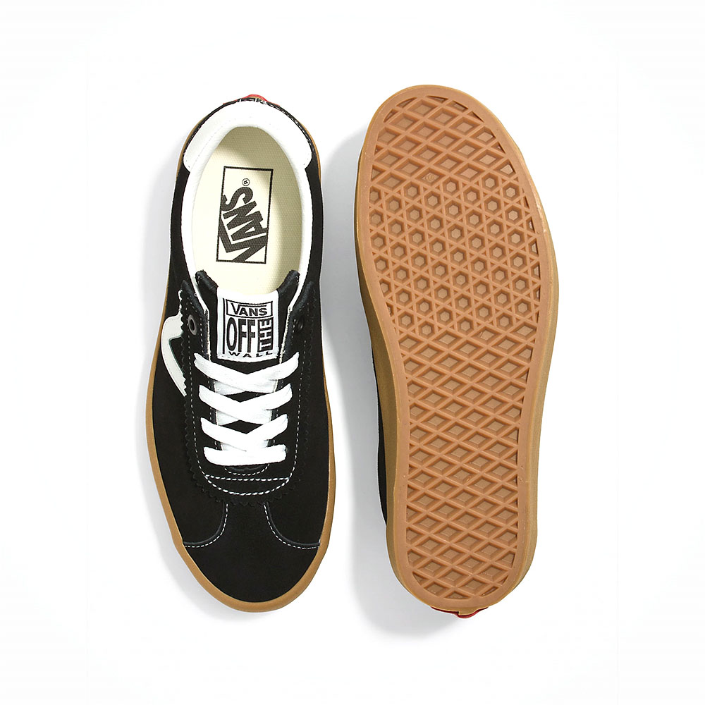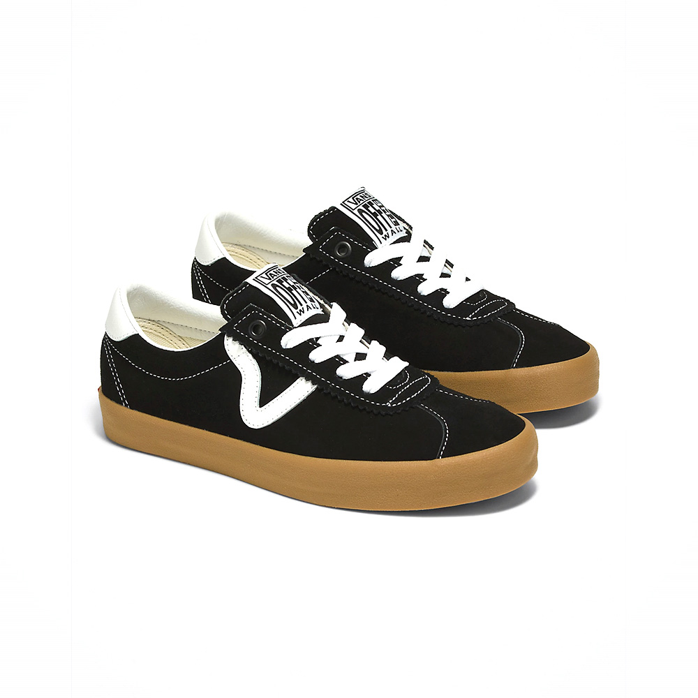 Vans Sport Low Black/Gum su muške patike koje kombinuju retro estetiku sa modernim dizajnom. Izrađene su od kvalitetnog antilopa u crnoj boji, sa kožnim detaljima i prepoznatljivim „V“ bočnim prugama. Nizak profil, klasičan vez i gumeni đon sa karakterističnim Vans „waffle“ dezenom pružaju udobnost i dobar grip. Savršen su izbor za svakodnevne aktivnosti i ljubitelje klasičnog stila.