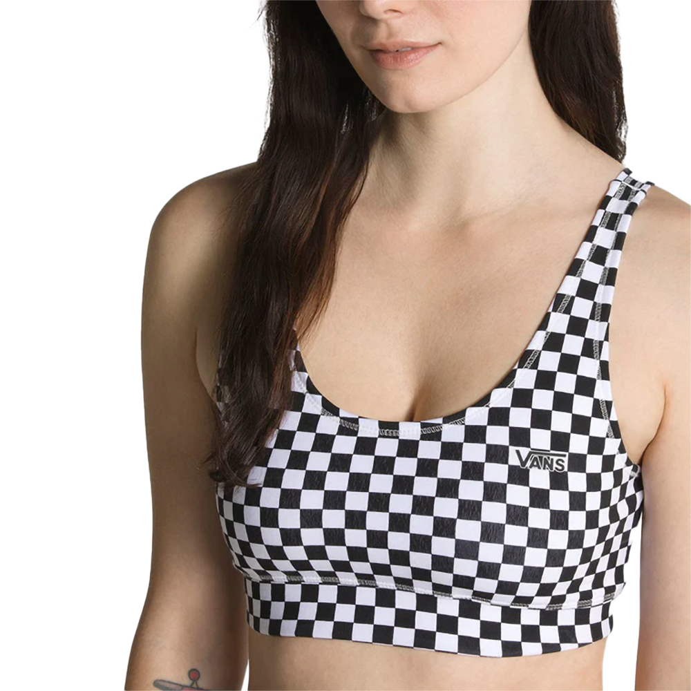 Vans Classic Sports Bra je sportski top koji kombinuje udobnost i autentičan stil. Ikonični crno-beli checkerboard dezen daje mu prepoznatljiv Vans identitet, dok elastična traka i mekani materijal pružaju podršku i slobodu pokreta. Idealan je za lagane treninge, skate sesije ili kao deo ležernog streetwear stila.